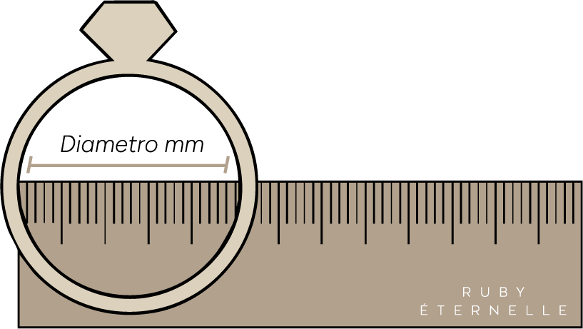 2. Coloca el anillo sobre una superficie plana y mide el diámetro interno del anillo (de borde interno a borde interno)