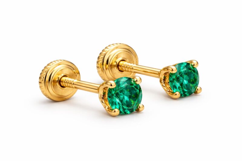 Topos en oro 4mm Esmeralda Colombiana