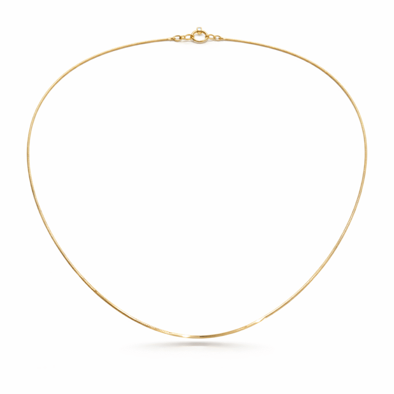 Cadena fina para mujer elaborada en oro italiano de 18K, con tejido liso y pulido que aporta brillo limpio y elegante. Su diseño minimalista y liviano la convierte en un básico imprescindible del joyero, ideal para uso diario, sola o acompañada de dijes pequeños y medianos. El largo de 45 cm enmarca suavemente el cuello y se adapta a cualquier estilo, desde casual hasta formal.