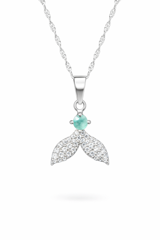 De la esmeralda nacen dos alas delicadamente pavonadas con circones blancos, que evocan libertad, protección y elevación espiritual. Su diseño estilizado crea movimiento visual y un equilibrio perfecto entre delicadeza y presencia.