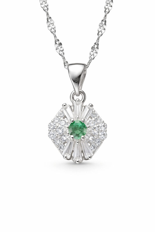 • Dije en plata ley 925 con circones y esmeralda natural
